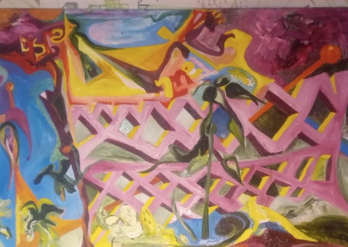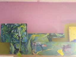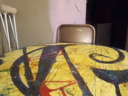 The table is made from one of the window riots downtown GR, summer of 2019 or so.